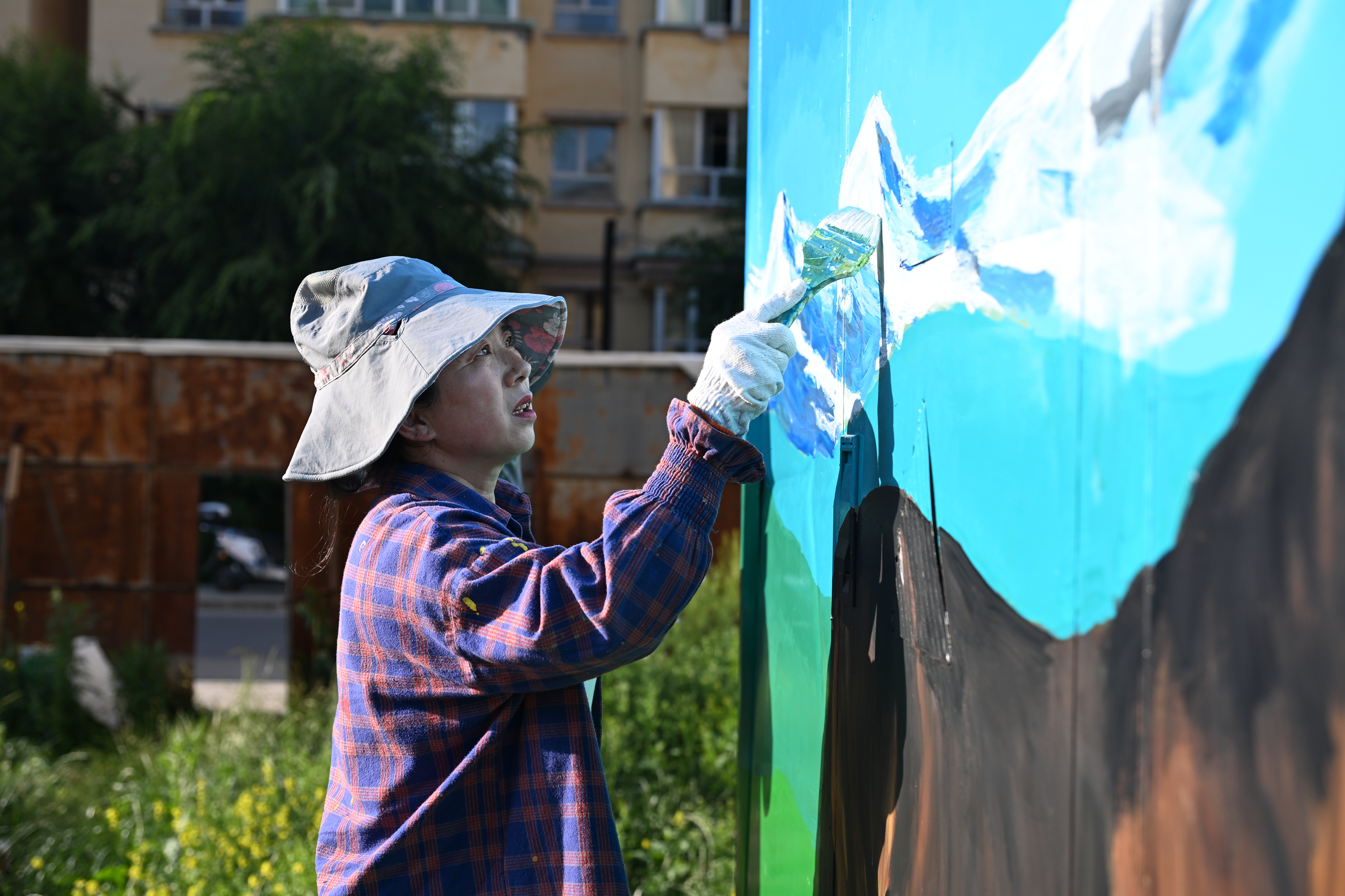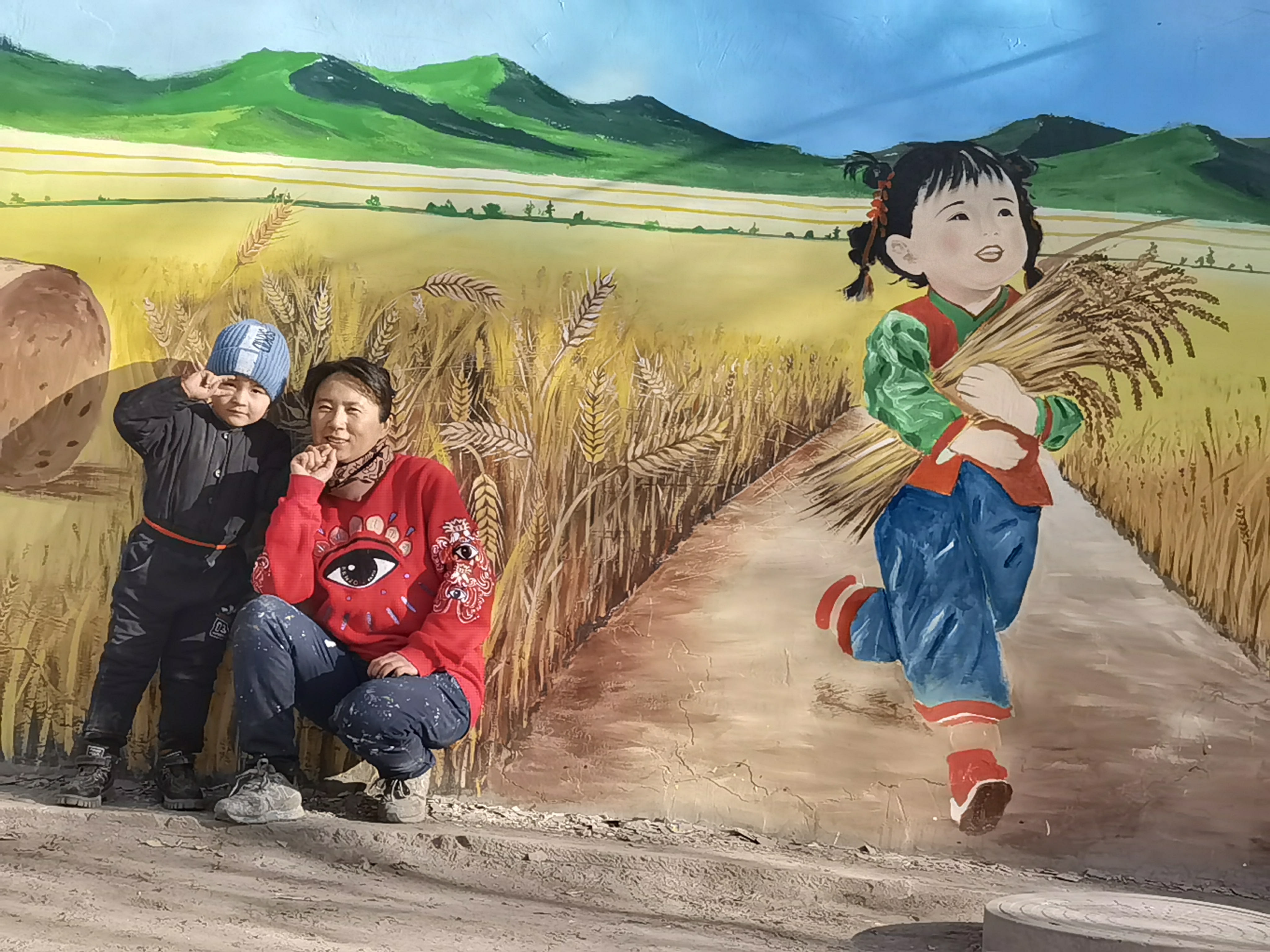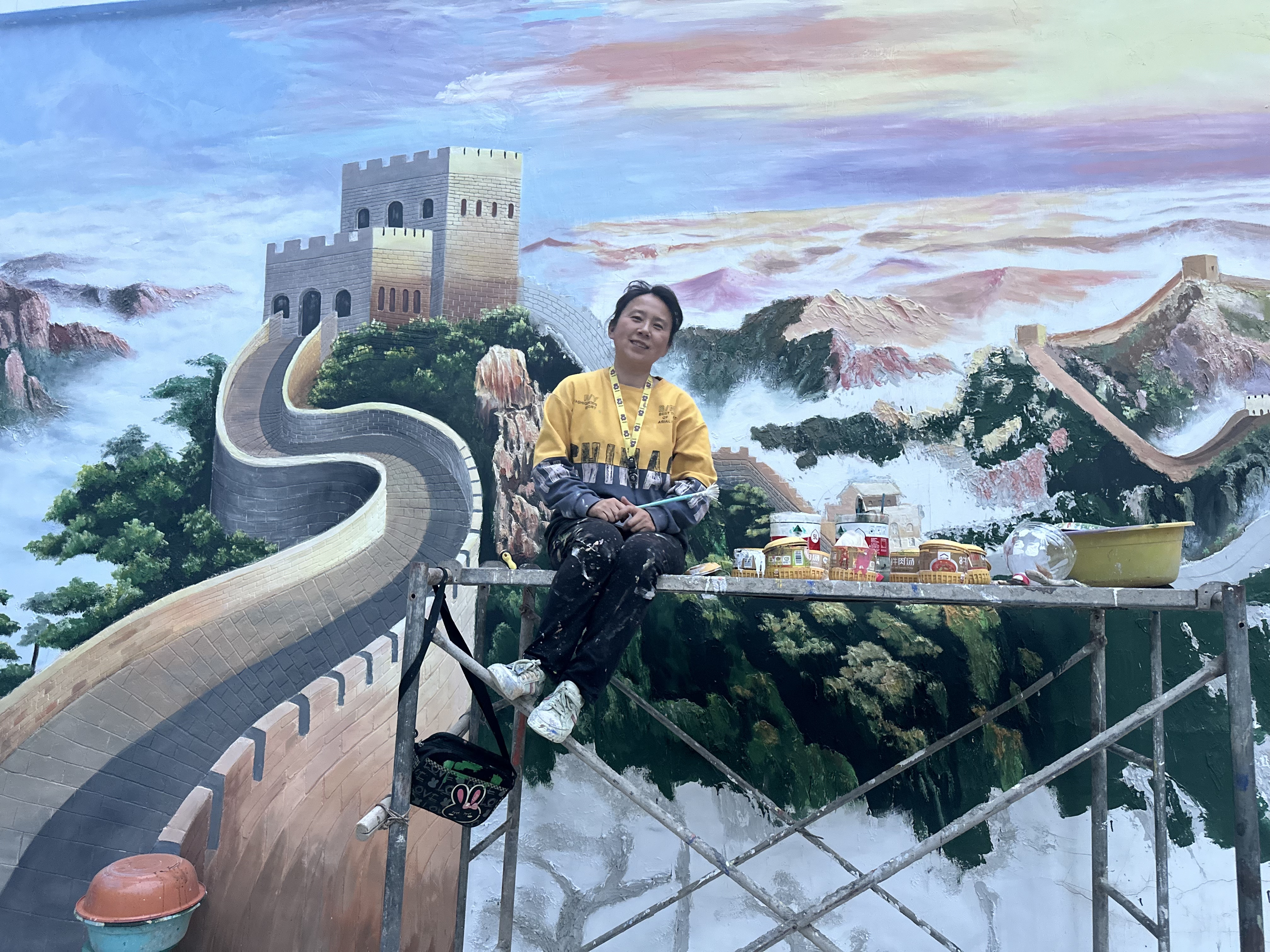 2020年,她因一次偶然的機(jī)會(huì)和壁畫結(jié)緣。當(dāng)時(shí),她去新疆和田地區(qū)駐村工作隊(duì)探望朋友,臨時(shí)受邀繪制《胡楊》《昆侖山》兩幅壁畫。沒想到,這兩幅融入西北壯闊意境的作品迅速走紅,壁畫所在之處成為當(dāng)?shù)馗髯迦罕姞?zhēng)相打卡的網(wǎng)紅地,也讓她堅(jiān)定了深耕壁畫創(chuàng)作的決心。短短五年間,她累計(jì)完成壁畫2000余幅,總面積超3萬平方米,其中《昆侖魂》《千里江山圖》及3D浮雕壁畫《萬里長(zhǎng)城》等佳作,多次被新疆官方媒體報(bào)道,成為當(dāng)?shù)匚幕瘋鞑サ牧聋惷?/span>